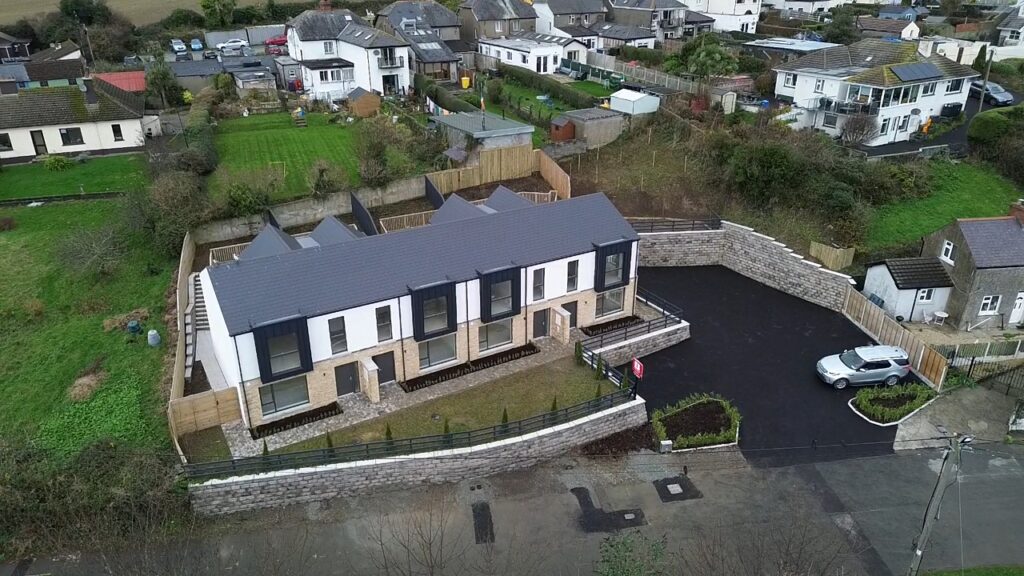 The Oaks, located on Lott Lane in Kilcoole, Co. Wicklow, is a contemporary residential development completed in 2024. The scheme comprises a row of four terraced three-bedroom houses, designed with a modern architectural approach.